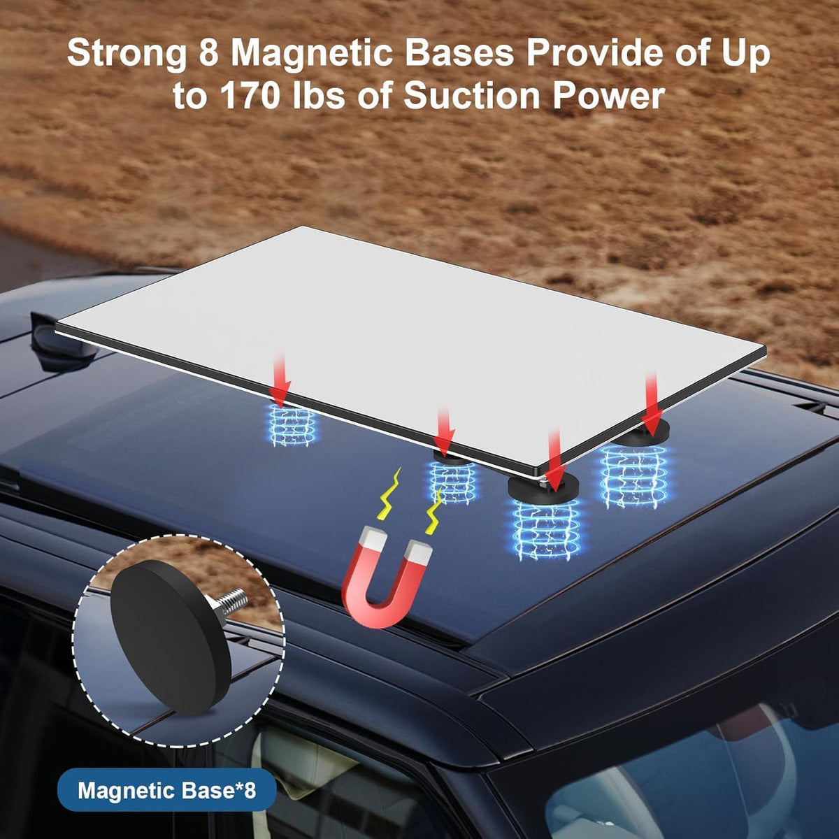 - Alta Capacidade de Suporte: Cada base magnética suporta até 77 kg, garantindo fixação estável mesmo em condições climáticas adversas.