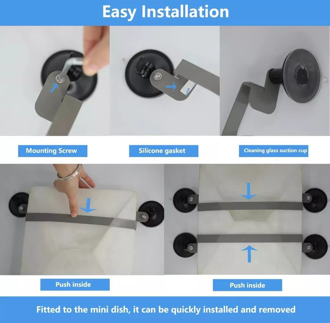 Antena Starlink não inclusa. Recomendamos que a instalação seja feita com cuidado em superfícies limpas e secas para máxima aderência das ventosas.